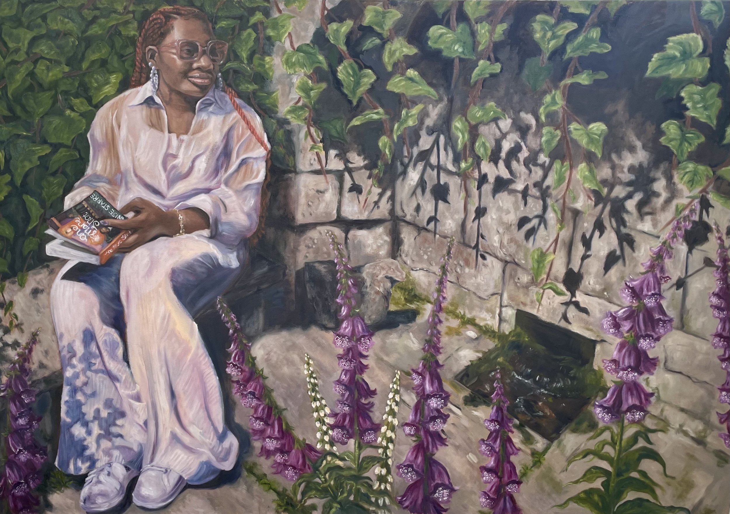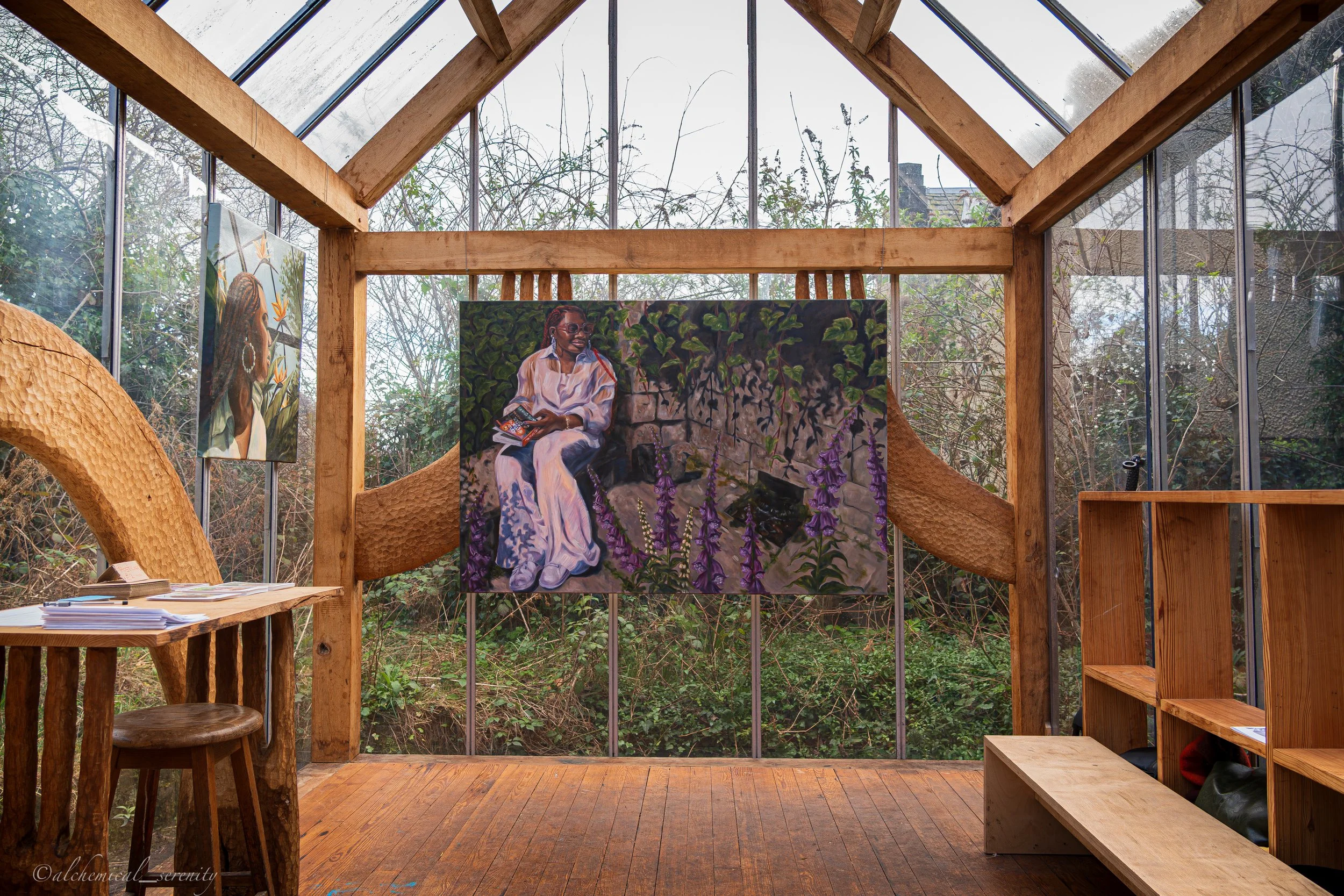 The figures of the paintings are set in Botanics Dundee where Shona spent time with friends to explore how we can find moments in nature away from our fast-paced lives. The paintings are an amalgamation of working from live drawing, photography, watercolour painting and imagination.